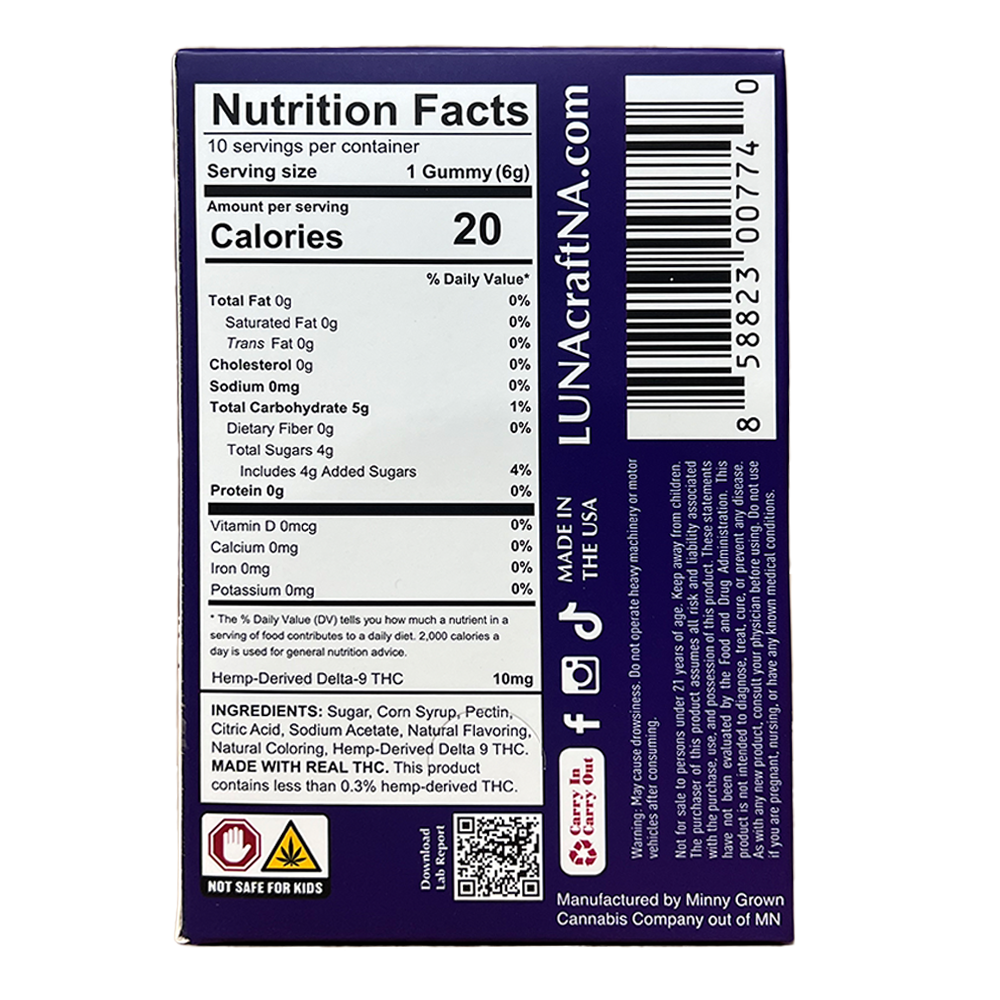 Infused with juicy blackberry flavor, these gummies taste as good as they feel—soft, sweet, and naturally delicious. Made with premium ingredients and created for those who value both wellness and enjoyment, LUNA gummies provide a clean, approachable way to enjoy the benefits of Delta-9.